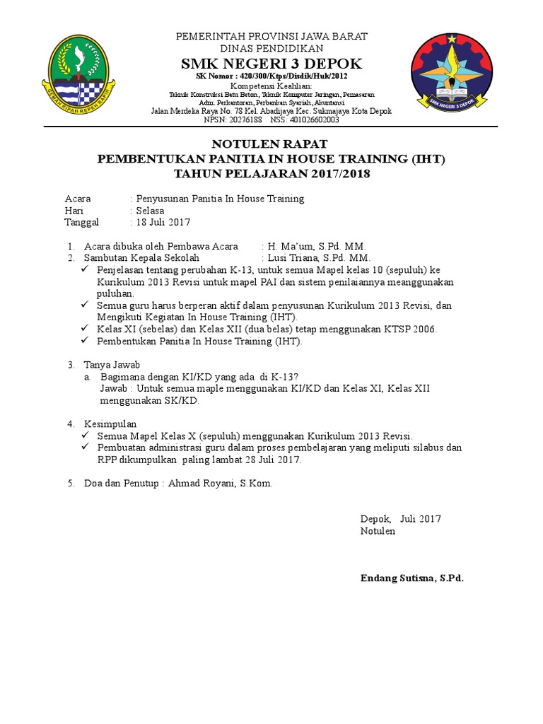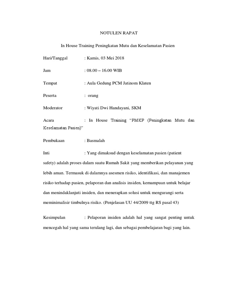 Notulen Rapat Iht 3 Mei 2018 Pdf